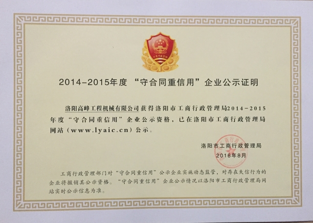 <<返回上一頁 2014-2015守合同重信用企業(yè)1 發(fā)布時(shí)間:2021-02-06點(diǎn)擊:1843 上一篇:洛陽市科學(xué)進(jìn)步獎(jiǎng)證書 下一篇:2014-2015守合同重信用企業(yè)